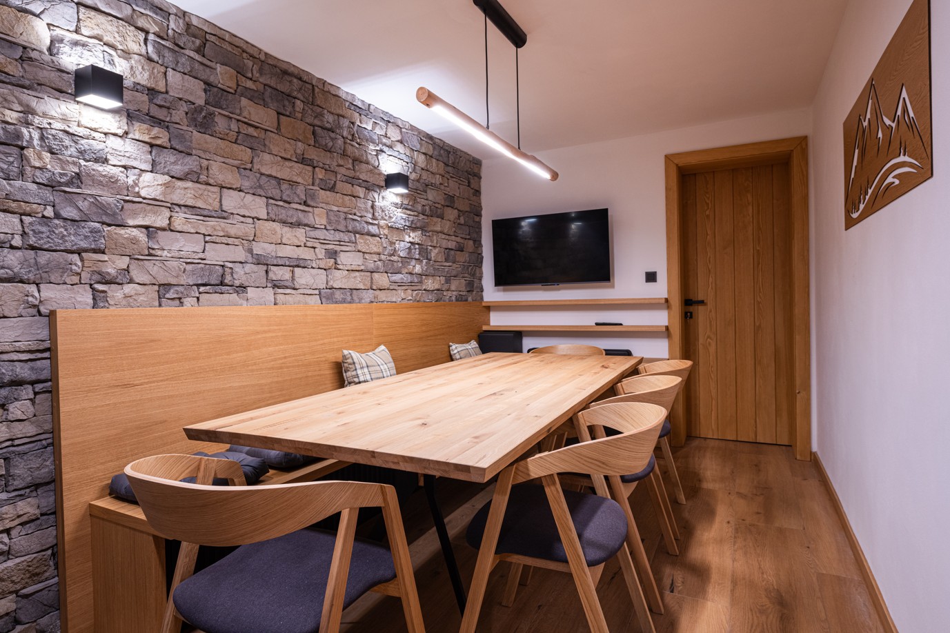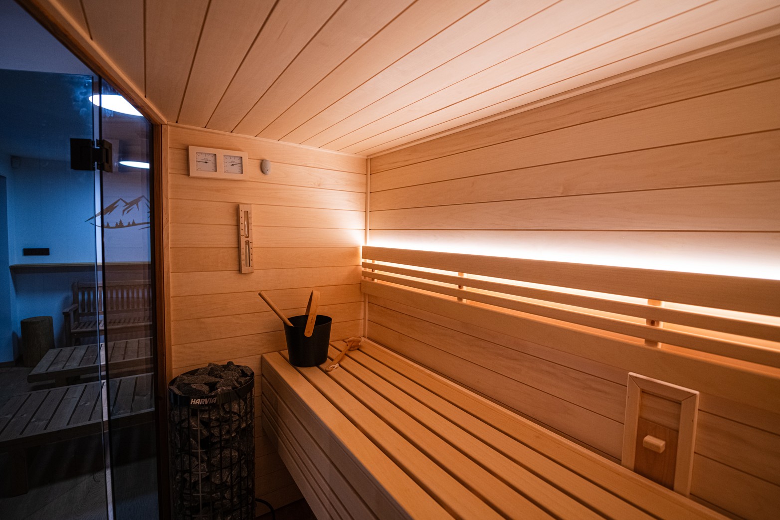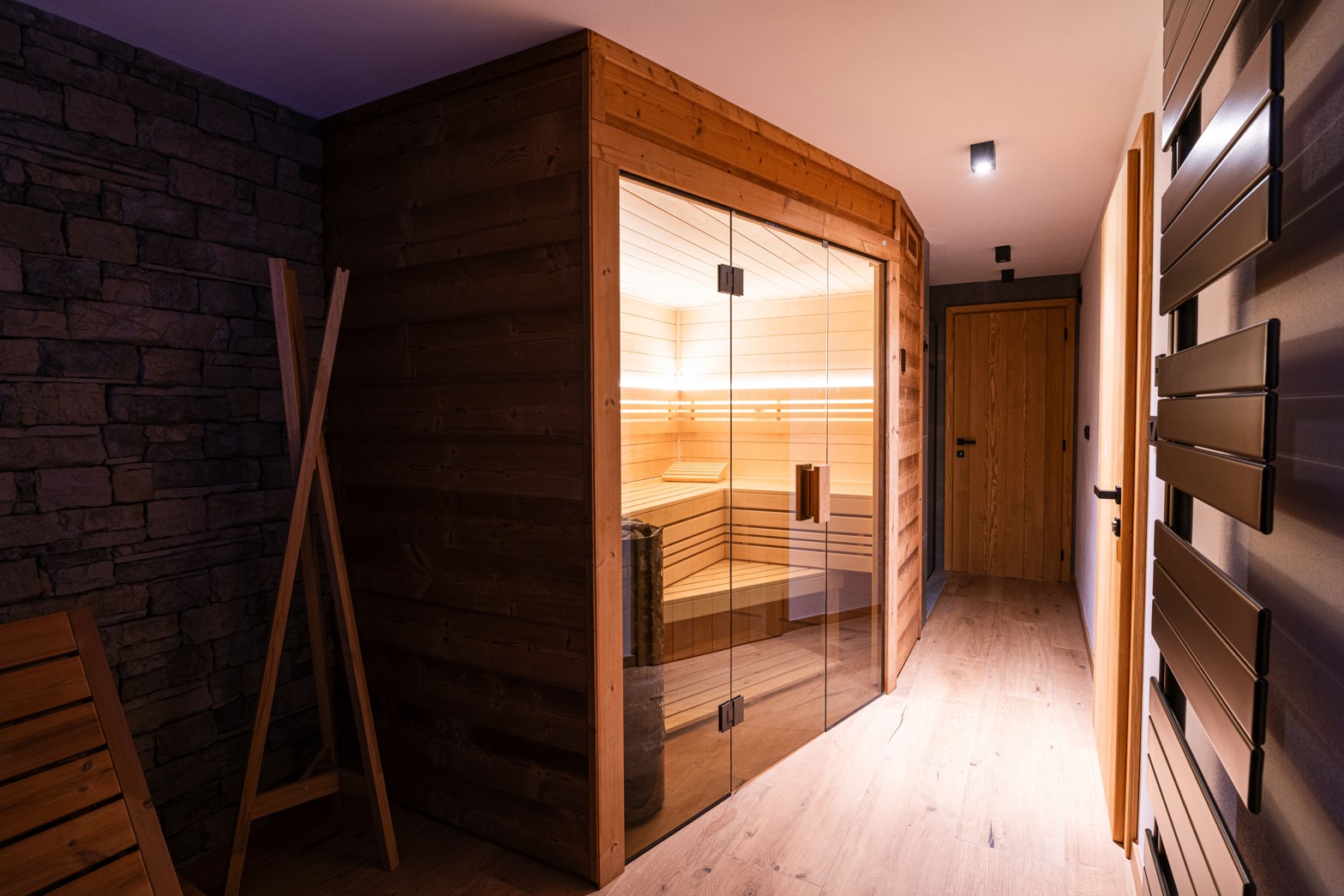 For total regeneration of body and mind, the apartment includes a relaxation area with its sauna, shower and the refreshing option of a cooling bucket of water – the perfect way to end a day of mountain adventures.