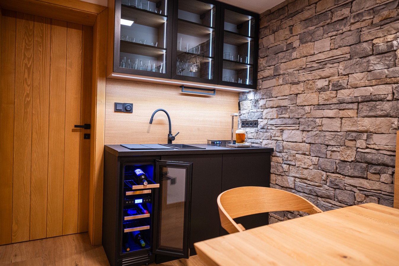 For those who like to socialise, there is a private pub right in the apartment. Here, you’ll find a beer tap, a wine bar and a large screen with a powerful sound system, perfect for watching sports or private parties with friends.